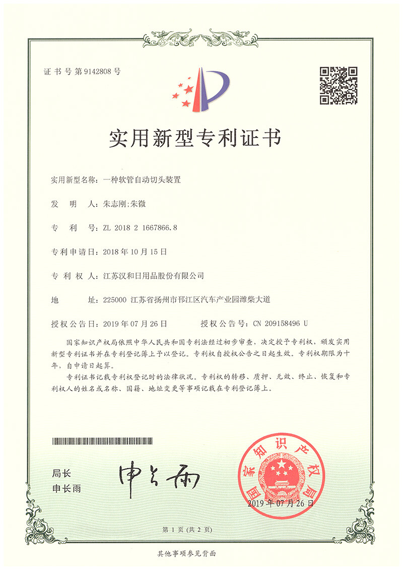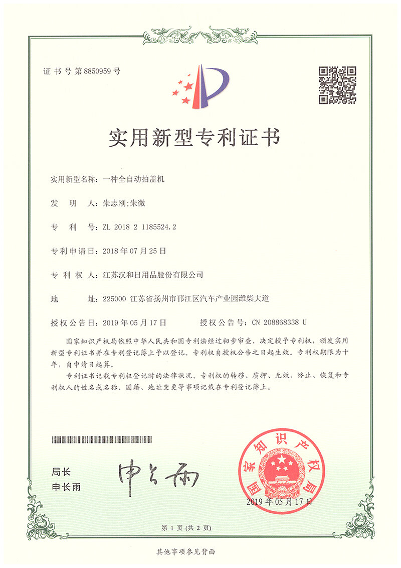 Utility model certificate product category